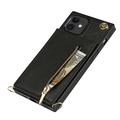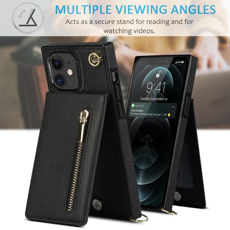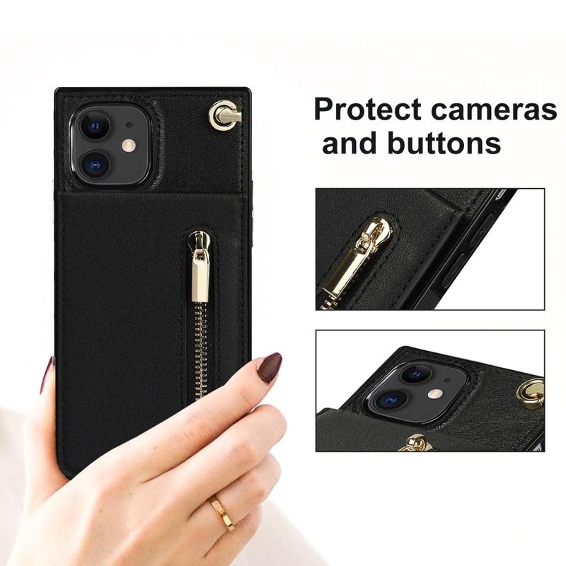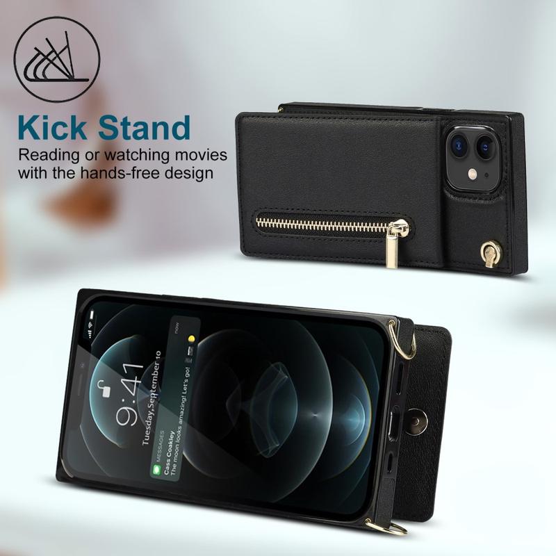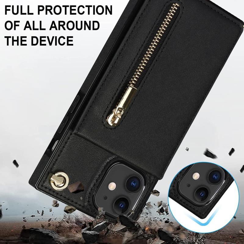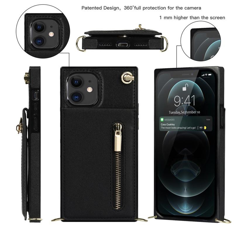 Capa híbrida com carteira e cordão de pescoço para iPhone 11