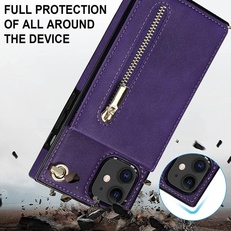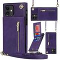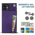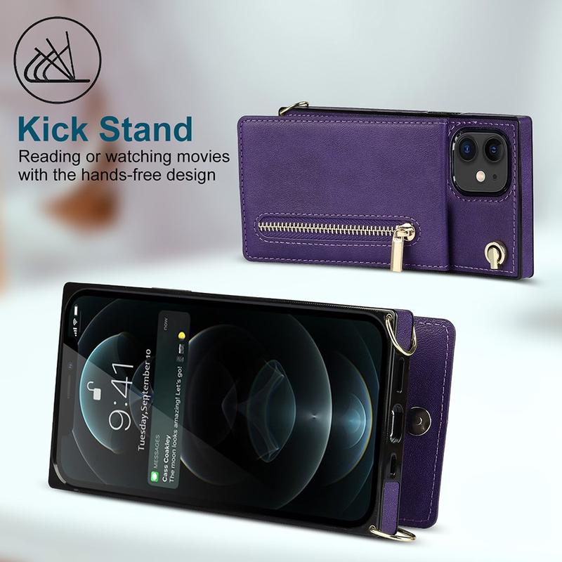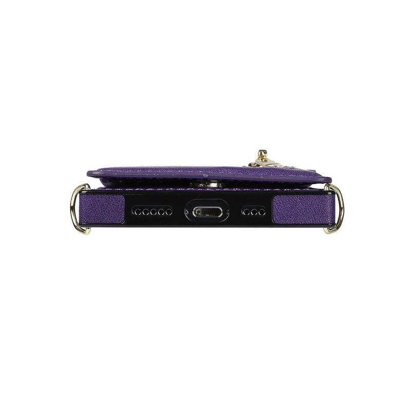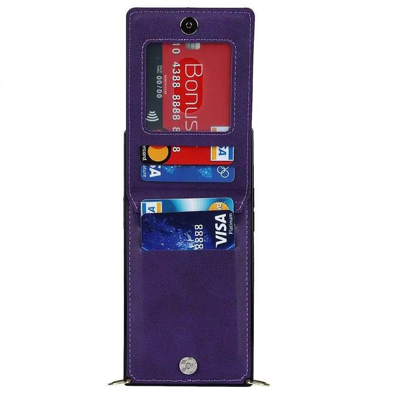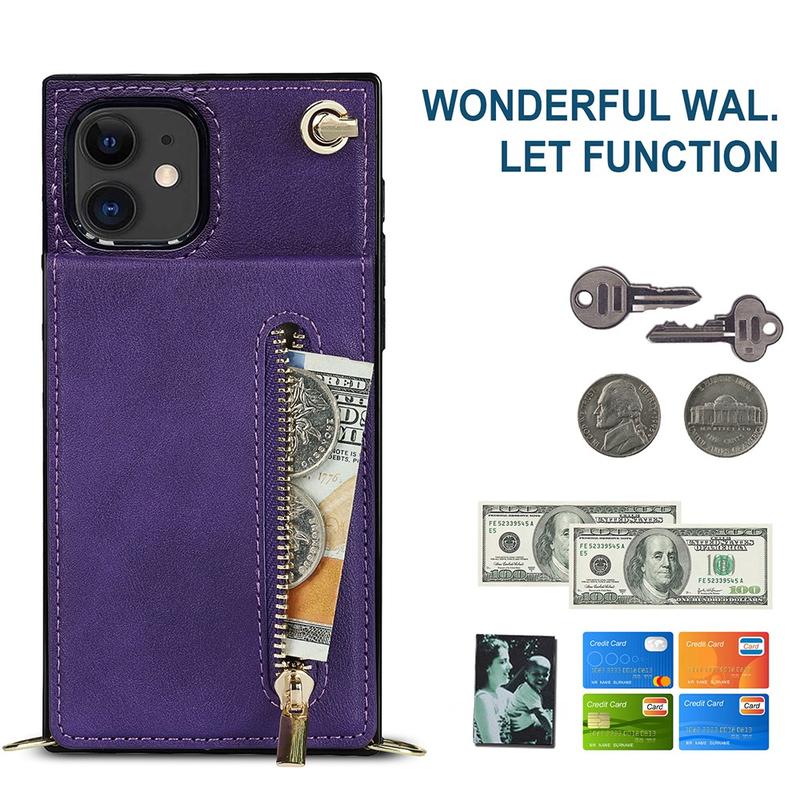 Capa híbrida com carteira e cordão de pescoço para iPhone 11
