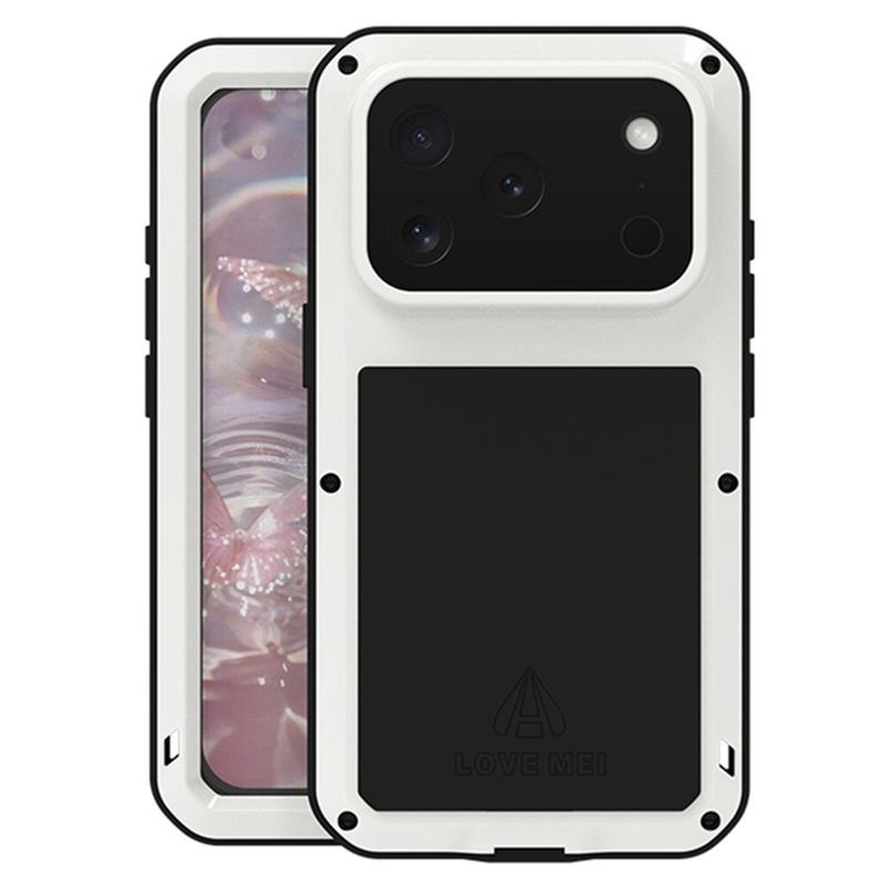 Capa híbrida Love Mei Powerful para iPhone 17 Pro - Capa protetora resistente em metal e silicone à prova de choque