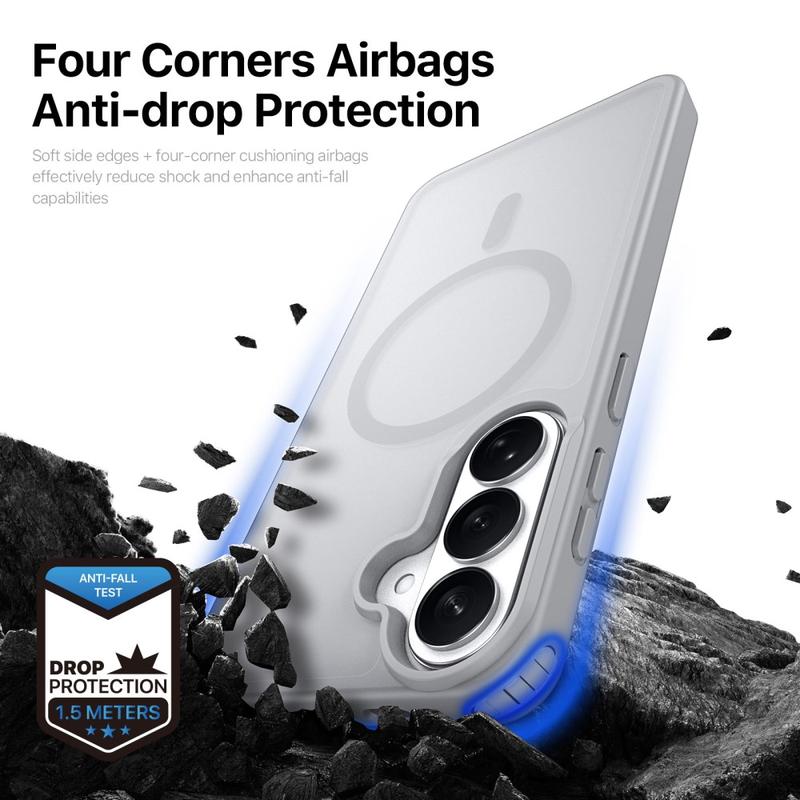 Proteja o seu Samsung Galaxy S26+ com uma elegante capa mate que se encaixa diretamente nos carregadores e acessórios MagSafe. A série Yind combina uma placa posterior em PC resistente a riscos com extremidades em TPU que absorvem os choques e um anel magnético alinhado com precisão, proporcionando uma alimentação sem cabos e uma proteção total contra quedas sem bolsos volumosos.