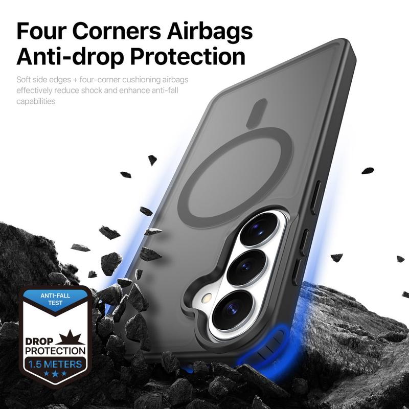 Proteja o seu Samsung Galaxy S26 com uma elegante capa mate que se encaixa diretamente nos carregadores e acessórios MagSafe. A série Yind combina uma placa posterior em PC resistente a riscos com extremidades em TPU que absorvem os choques e um anel magnético alinhado com precisão, proporcionando uma alimentação sem cabos e uma proteção total contra quedas sem bolsos volumosos.