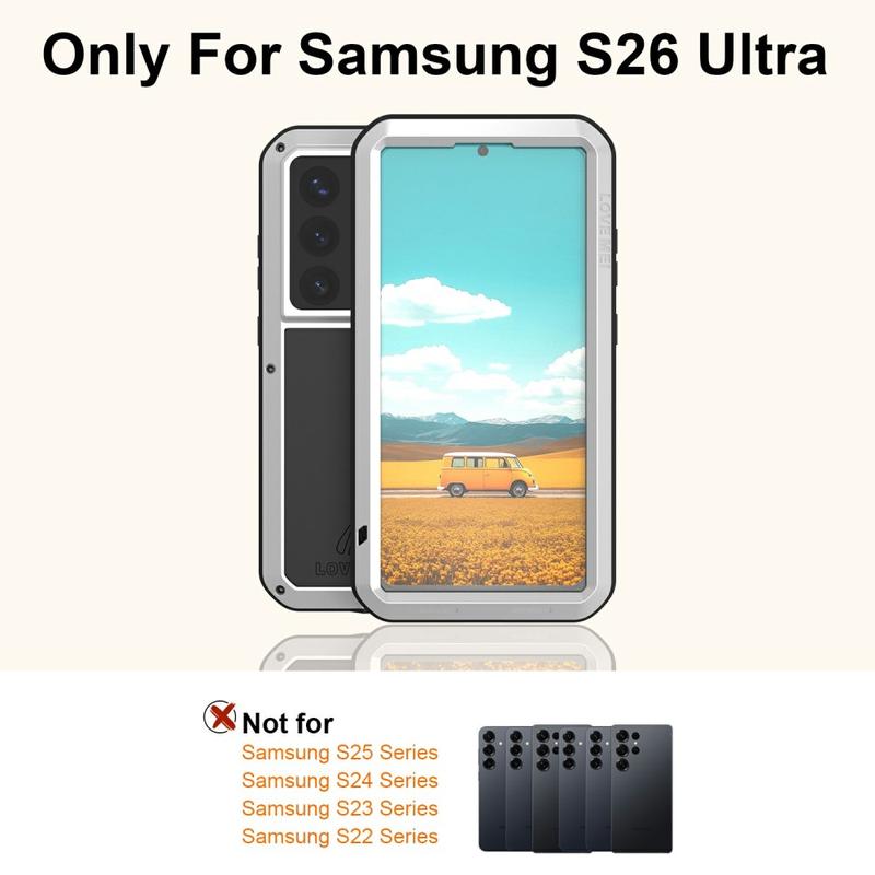 Capa híbrida Love Mei Powerful para Samsung Galaxy S26 Ultra - Capa protetora resistente em metal e silicone à prova de choque