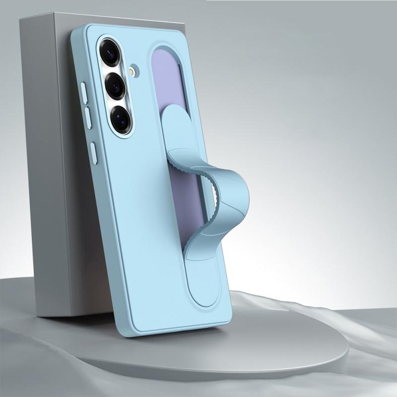 A alça retrátil em TPU proporciona uma aderência segura com uma só mão para reduzir as quedas acidentais. Quando estendida, funciona como suporte, oferecendo ângulos de visualização verticais e horizontais para filmes, chamadas de vídeo ou apresentações.