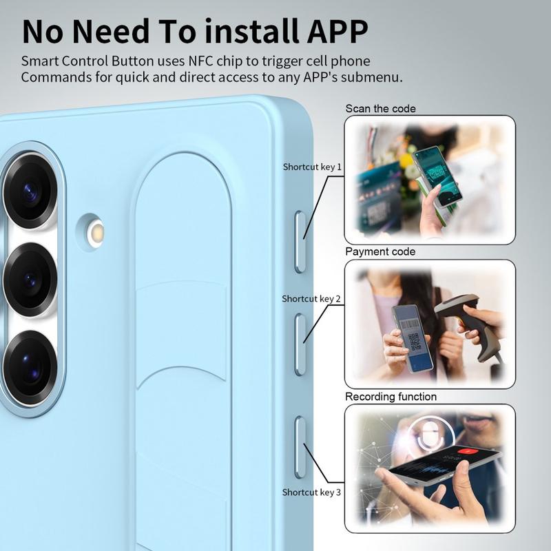 Capa híbrida Smart com pega de pé para Samsung Galaxy S24+ - Teclas de atalho personalizáveis NFC, suporte de pulso e proteção de câmara em liga leve