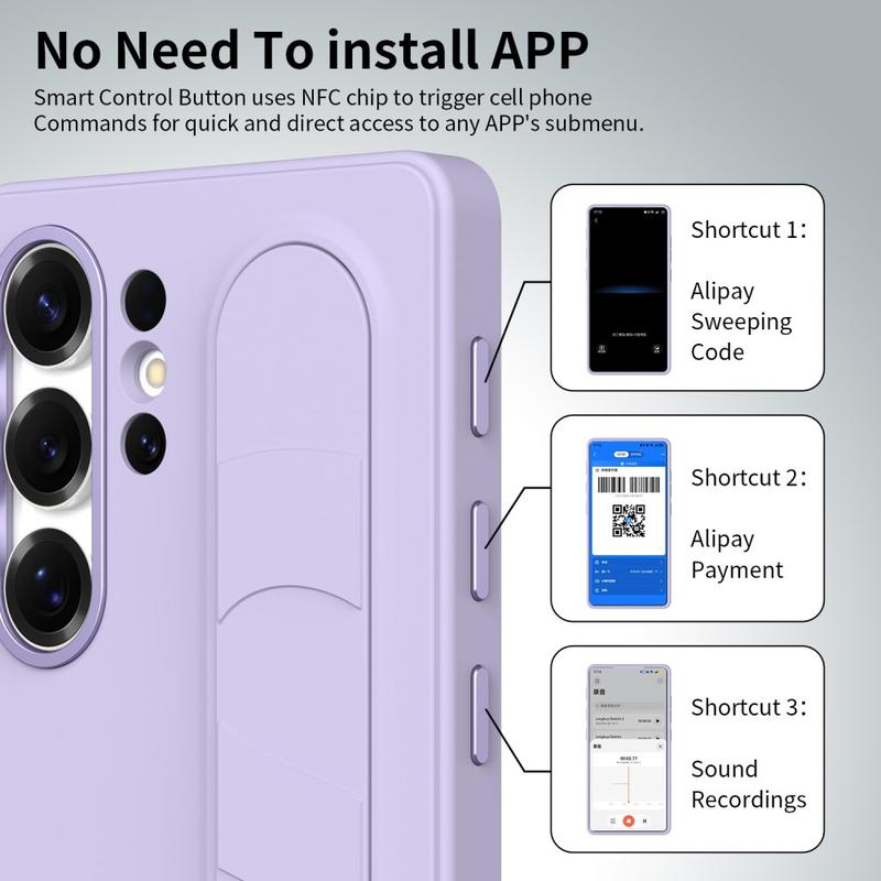 Capa híbrida Smart com pega de pé para Samsung Galaxy S26 Ultra - Teclas de atalho personalizáveis NFC, suporte de pulso e proteção de câmara em liga leve