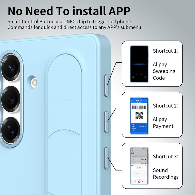 Capa híbrida Smart com pega de pé para Samsung Galaxy S26+ - Teclas de atalho personalizáveis NFC, suporte de pulso e proteção de câmara em liga leve