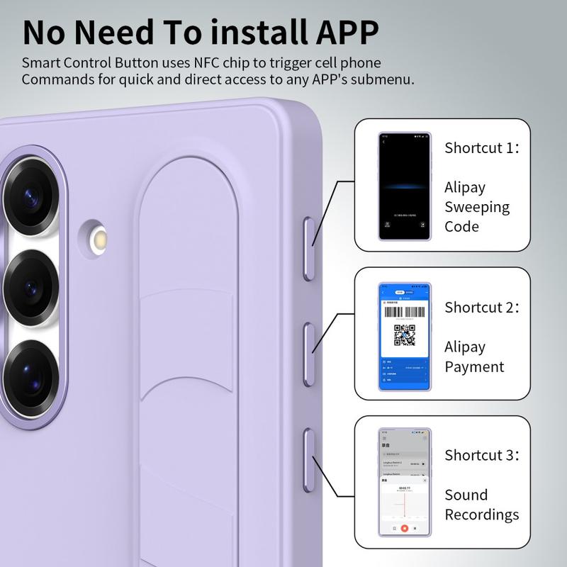 Capa híbrida Smart com pega de pé para Samsung Galaxy S26 - Teclas de atalho personalizáveis NFC, suporte de pulso e proteção de câmara em liga leve