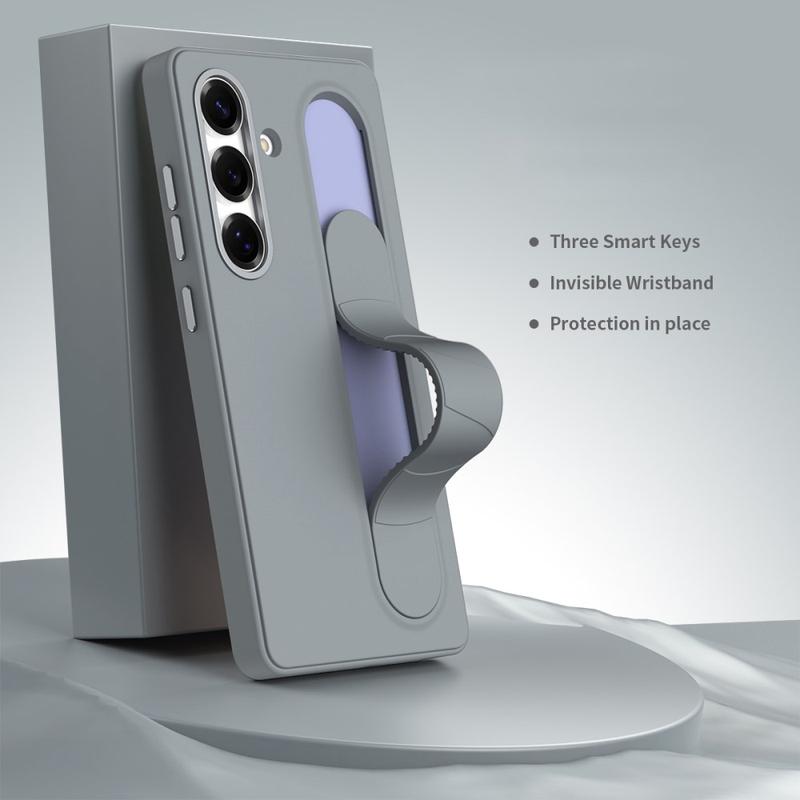 Capa híbrida Smart com pega de pé para Samsung Galaxy S26 - Teclas de atalho personalizáveis NFC, suporte de pulso e proteção de câmara em liga leve