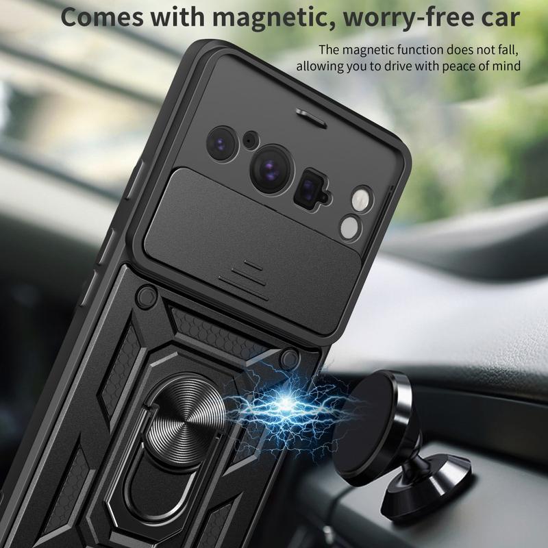 - Capa híbrida de anel rotativo com proteção de câmera para Google Pixel 8 Pro