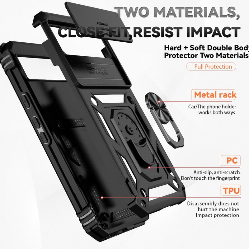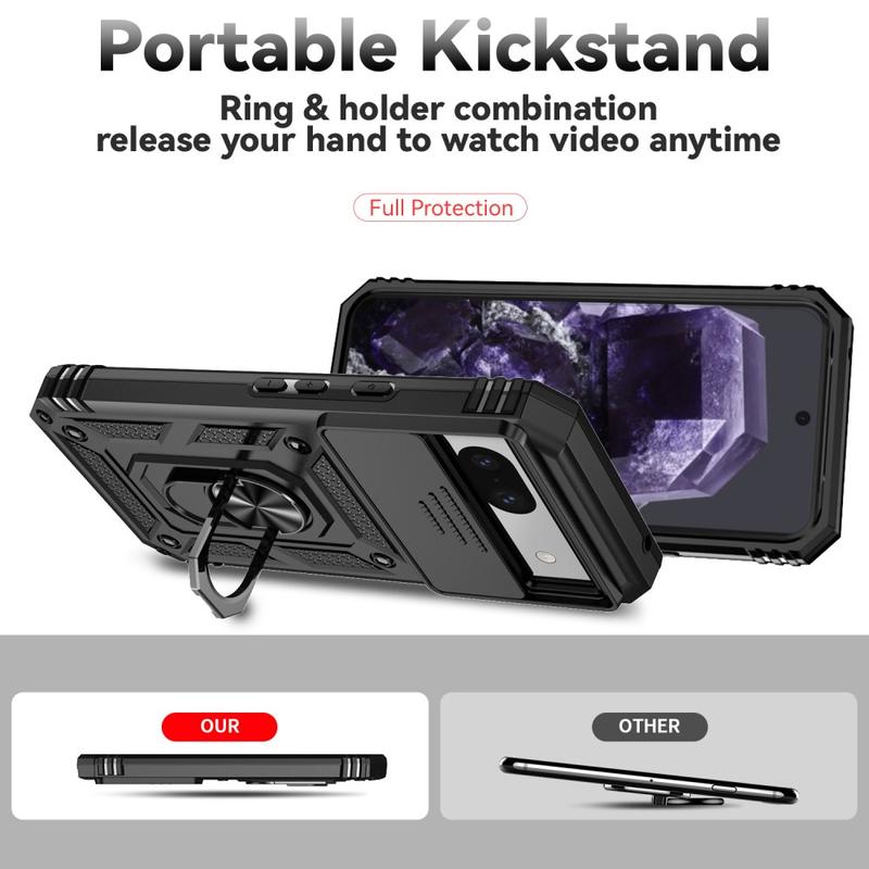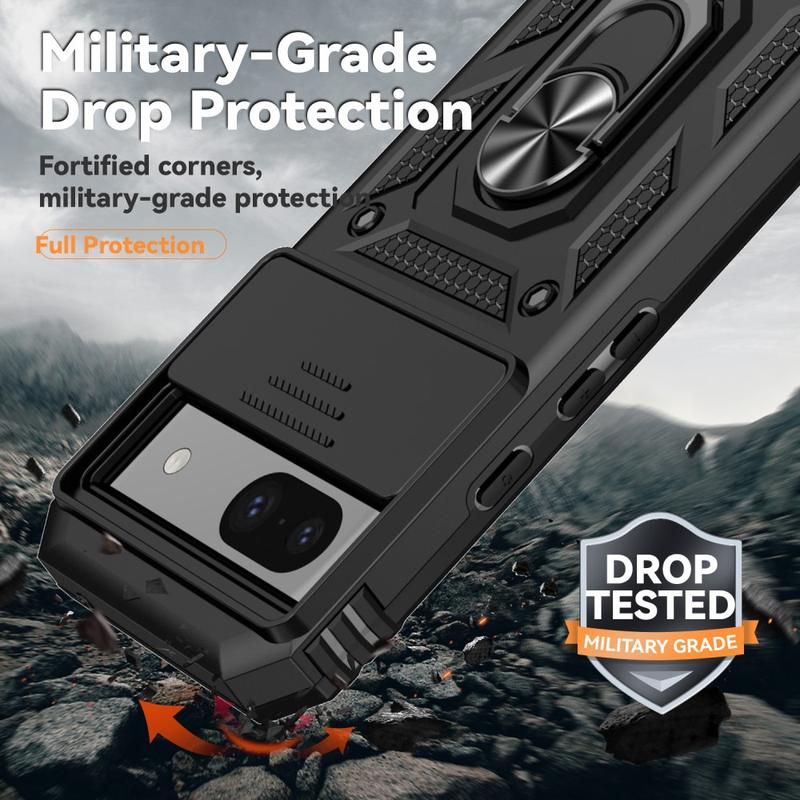 - Capa híbrida de anel rotativo com proteção de câmera para Google Pixel 8a