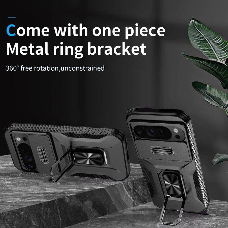 - Capa híbrida de anel rotativo com proteção de câmera para Google Pixel 9 Pro XL