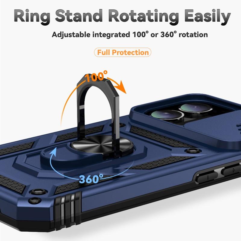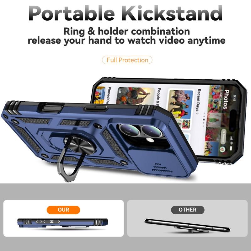 - Capa híbrida de anel rotativo com proteção de câmera para iPhone 16