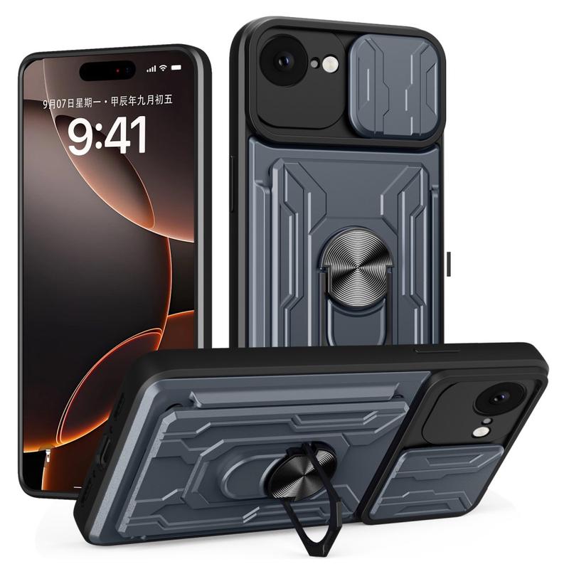 - Capa híbrida de anel rotativo com proteção de câmera para iPhone 16e