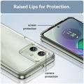 Esta capa protetora de qualidade protege a parte traseira e lateral do Motorola Moto G54 dos impactos, cortes e arranhões diários. A capa tem um formato perfeito para acompanhar os contornos do Motorola Moto G54, enquanto a parte traseira transparente permite que a sua beleza original brilhe.