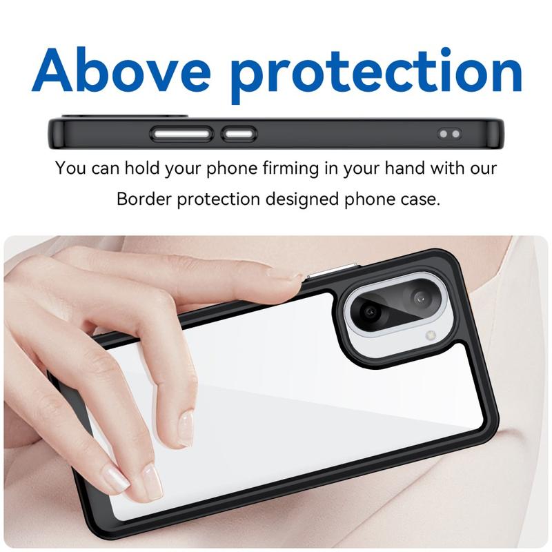 - Construção de material duplo - painel traseiro de acrílico transparente e bordas de TPU