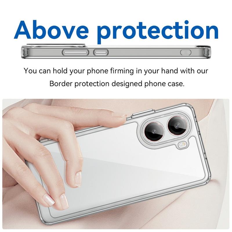 - Construção de material duplo - painel traseiro de acrílico transparente e bordas de TPU