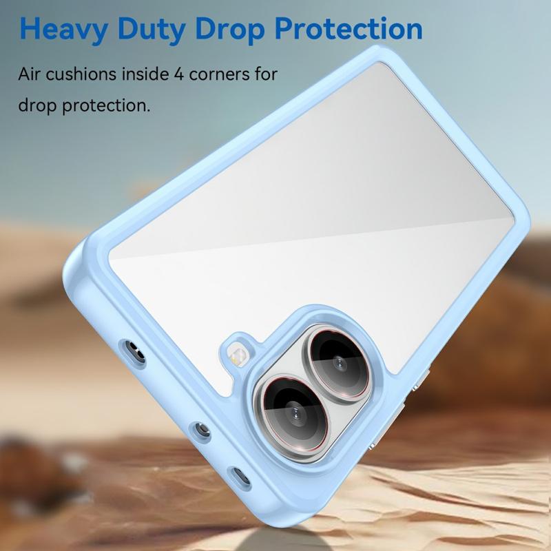 - Construção de material duplo - painel traseiro de acrílico transparente e bordas de TPU