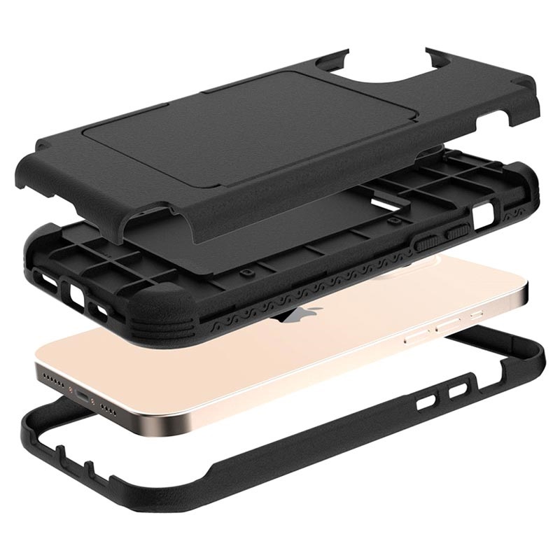 Mantenha o seu cartão de identidade ou de crédito guardado em segurança dentro desta capa à prova de choques para iPhone 12 Pro Max, com espelho integrado.