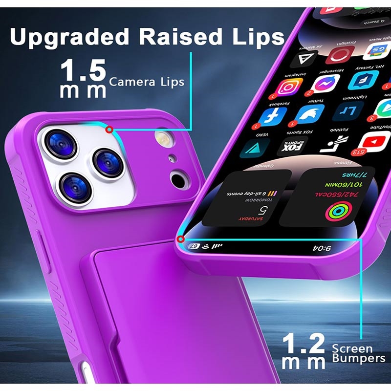 Refresque o aspeto do seu iPhone 17 Pro Max com esta elegante capa híbrida! Para ter sempre um aspeto perfeito, existe um espelho de fácil acesso. Faça as suas compras com duas ranhuras de cartão de crédito mais facilmente. Os cantos reforçados irão proteger adicionalmente o seu iPhone 17 Pro Max.
