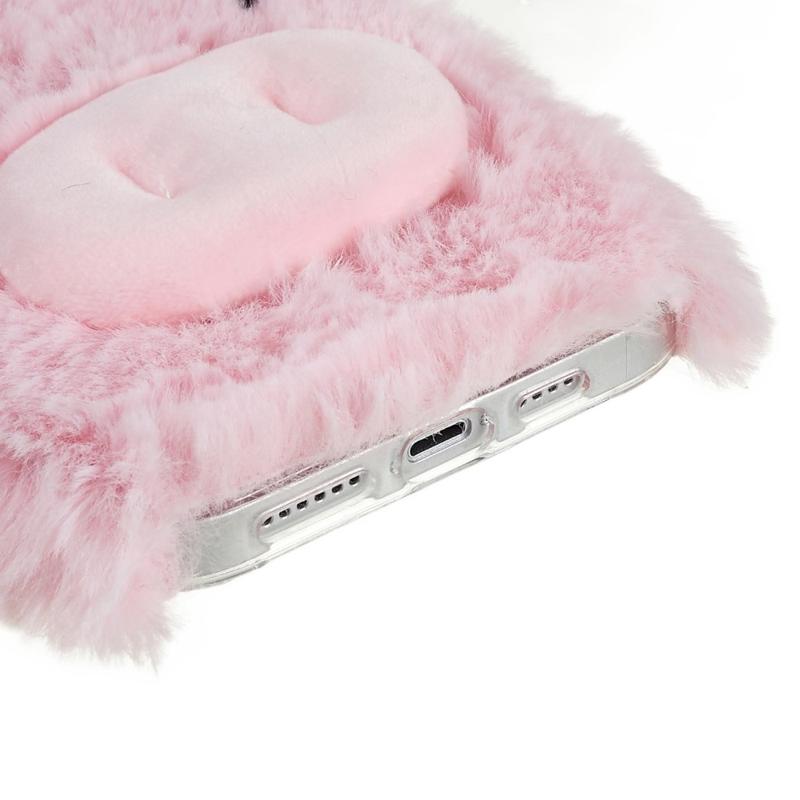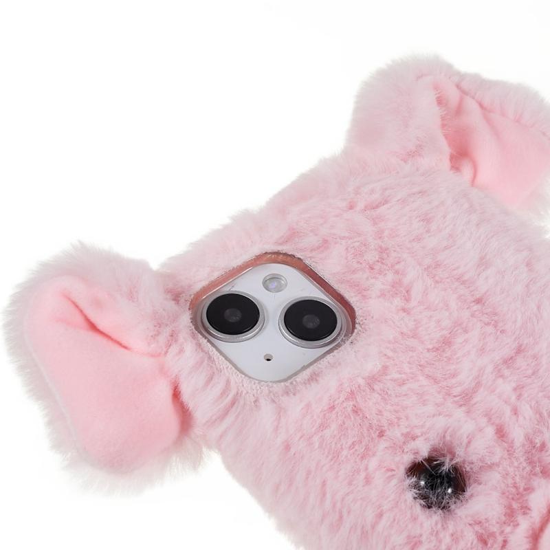 Para iPhone 14 Plus Cute Cartoon Pig Design Soft Plush + TPU Protective Case Phone Cover Drop-proof