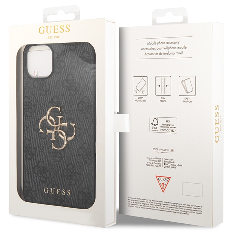 - A capa híbrida Guess 4G Big Metal Logo torna o seu iPhone 15 mais espetacular e elegante