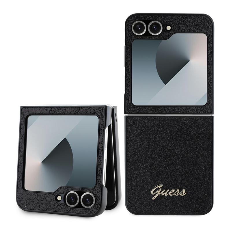 - Capa híbrida Guess Glitter Flakes Metal Logo para Samsung Galaxy Z Flip6, Galaxy Z Flip7 FE