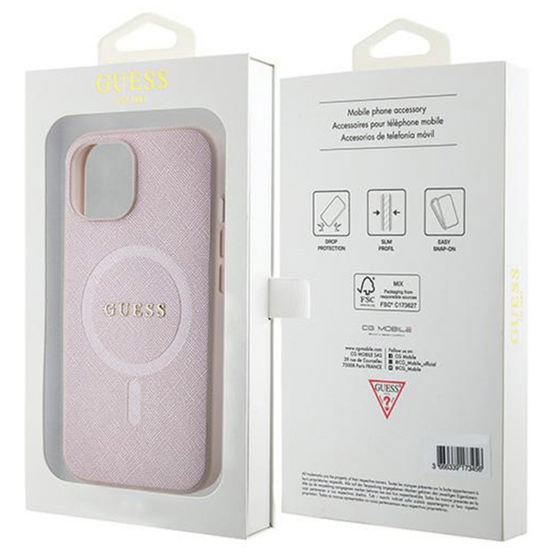 Capa Híbrida Guess Saffiano para iPhone 15 - Compatível com MagSafe