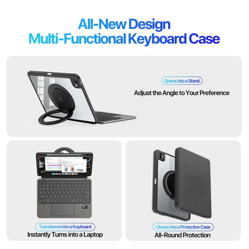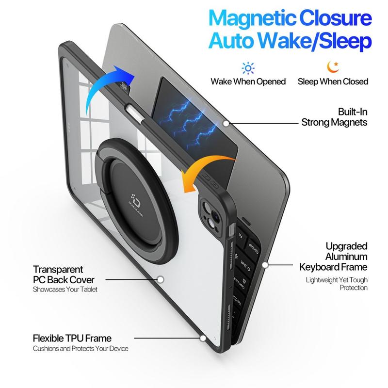 A Capa para Teclado DUX DUCIS Série VK transforma o seu iPad Pro 11 (2024), iPad Pro 11 (2025) numa estação de trabalho versátil e num centro de entretenimento. Combinando uma capa protetora, um teclado amovível, um trackpad multi-toque e um suporte, adapta-se a qualquer cenário com uma simples ação de abrir e fechar.
