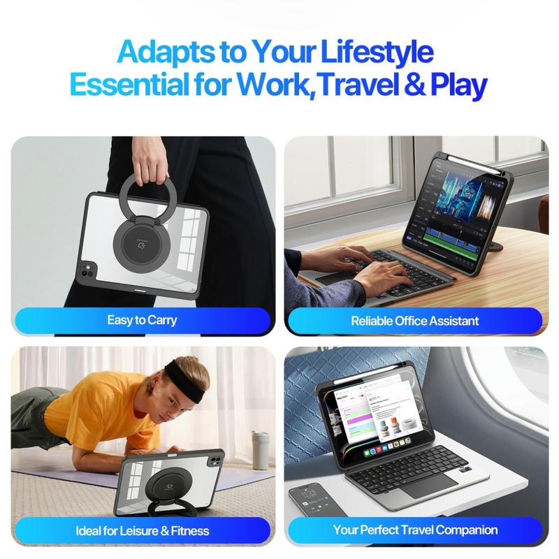 Desfrute de um posicionamento ilimitado com o suporte rotativo de 360° e o ajuste de ângulo de 180°, suportando as orientações de paisagem e retrato. Perfeito para digitar, fazer chamadas de vídeo, desenhar ou assistir aos seus programas favoritos.