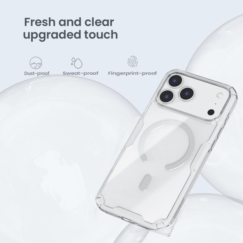 Capa híbrida Nillkin Nature Pro para iPhone 17 Pro Max - Compatível com MagSafe, TPU ultra-claro + PC com rebordo elevado para proteção da câmara e do ecrã