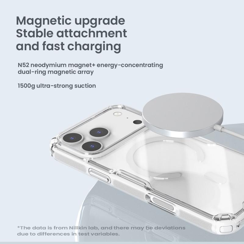 Capa híbrida Nillkin Nature Pro para iPhone 17 Pro - Compatível com MagSafe, TPU ultra-claro + PC com rebordo elevado para proteção da câmara e do ecrã