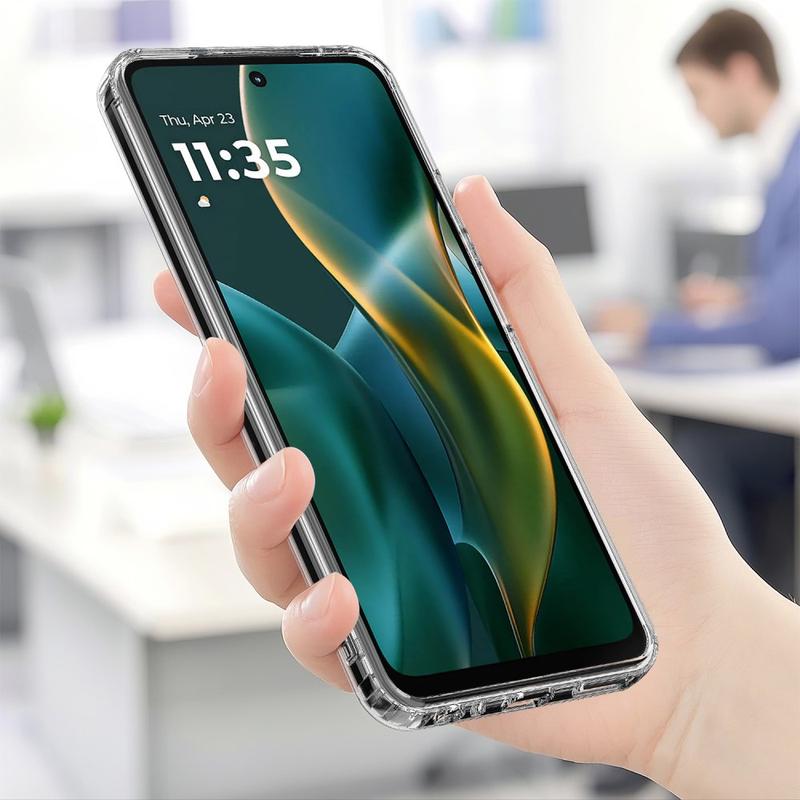 Esta capa protetora de qualidade protege a parte traseira e lateral do Motorola Edge 60 Stylus dos impactos, cortes e arranhões diários. A capa tem um formato perfeito para acompanhar os contornos do Motorola Edge 60 Stylus, enquanto a parte traseira transparente permite que a sua beleza original brilhe.