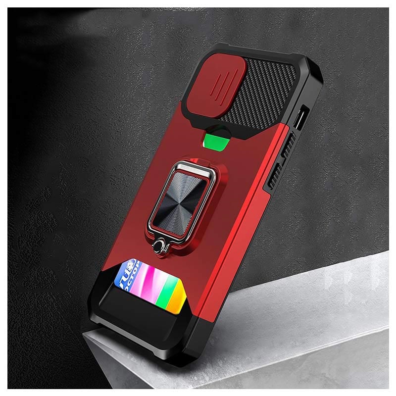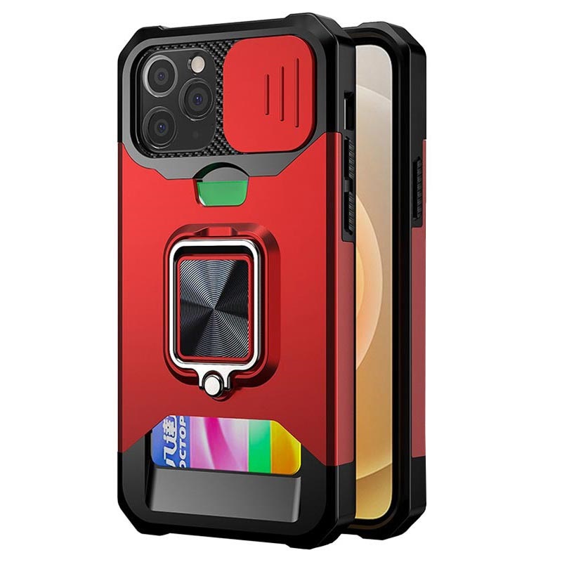 Capa Híbrida Multifuncional 4-em-1 para iPhone 12, iPhone 12 Pro com Porta-cartões, Anel Magnético, Suporte, Proteção da Câmara