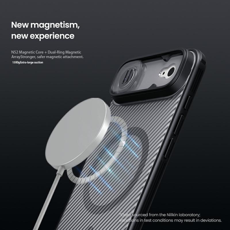 Seu iPhone Air ficará como novo, equipado com a capa híbrida Nillkin CamShield Pro Magnetic de alta qualidade. A combinação de plástico durável e materiais TPU flexíveis garante proteção extrema contra os impactos do dia a dia. A capa possui uma tampa deslizante para câmera que protege completamente sua câmera iPhone Air e preserva sua privacidade contra espionagem indesejada. Enquanto isso, os ímãs integrados permitem que você conecte seu carregador, suporte ou carteira sem fio MagSafe ao iPhone Air enquanto ainda está no estojo.