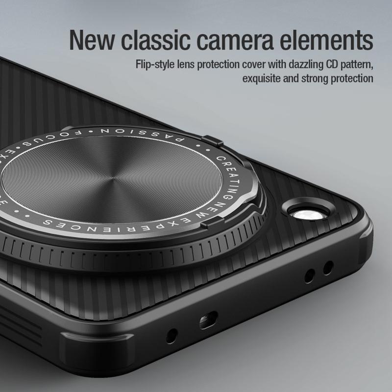 - Esta extraordinária capa híbrida Nillkin CamShield Prop é feita de materiais plásticos e TPU