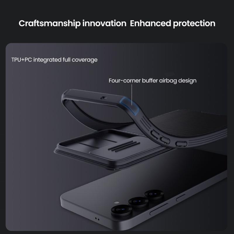 - Esta extraordinária capa híbrida Nillkin CamShield Prop é feita de materiais plásticos e TPU