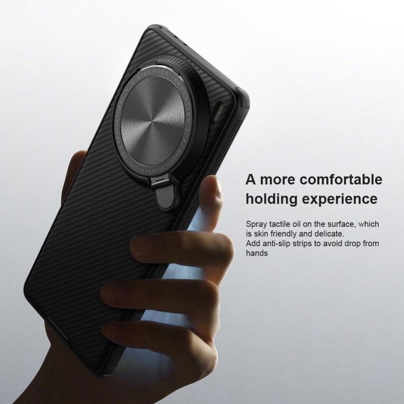 - Esta extraordinária capa híbrida Nillkin CamShield Prop é feita de materiais plásticos e TPU