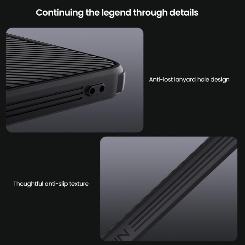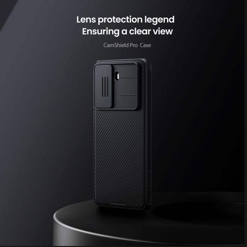 - Esta extraordinária capa híbrida Nillkin CamShield Prop é feita de materiais plásticos e TPU