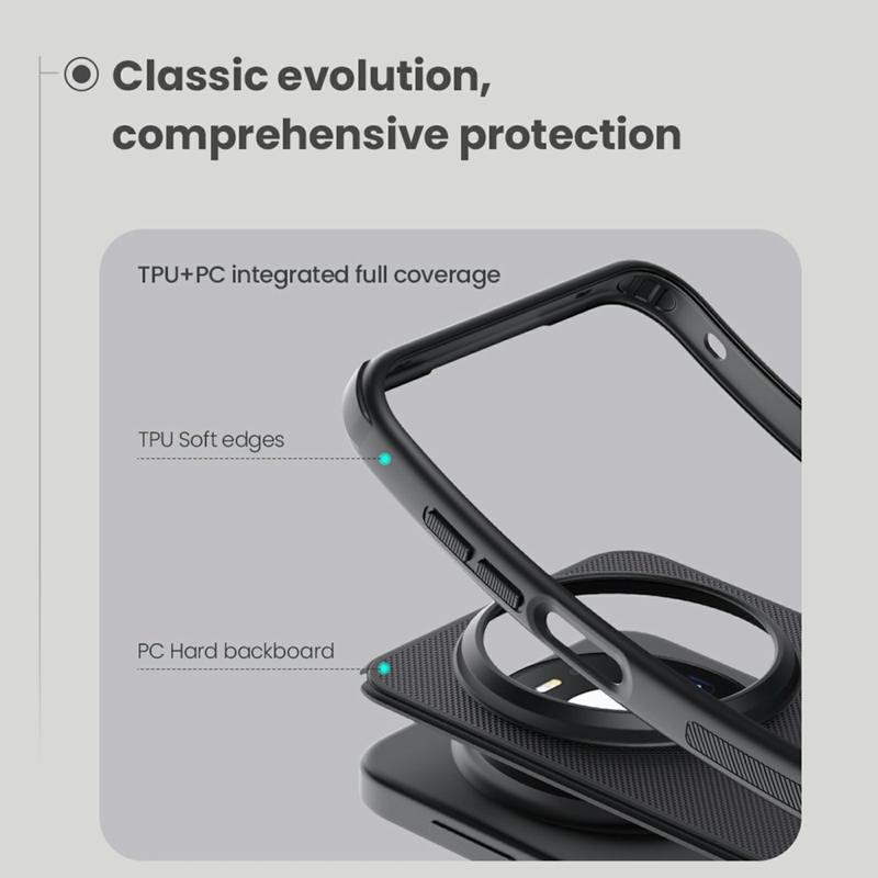 A capa híbrida Nillkin Frosted Shield Pro Magnetic oferece uma sensação de toque confortável e forte proteção contra o desgaste diário. Ele mantém seu Huawei Mate 80 Pro Max bem protegido graças à combinação de PC ecológico e TPU flexível. A capa híbrida Nillkin Frosted Shield Pro Magnetic também contém um anel magnético integrado compatível com carregamento sem fio, o que significa que você pode carregar seu Huawei Mate 80 Pro Max a partir de agora com a capa.
