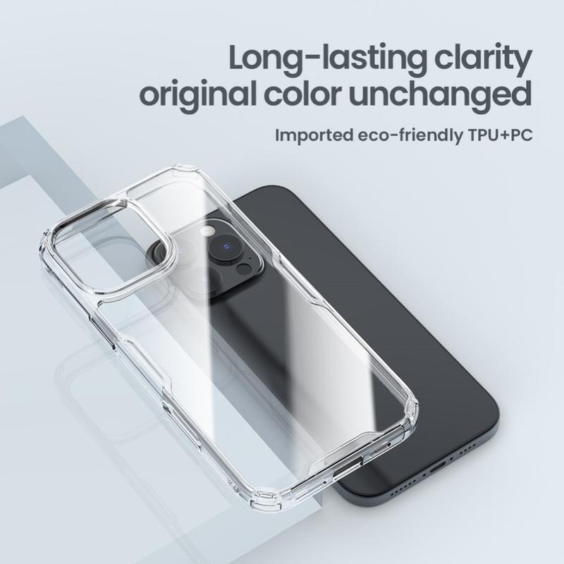 A capa híbrida em TPU Nillkin Nature Pro protege o seu iPhone 16 Pro Max contra riscos e danos diários, e com o seu design anti deslizante, mantém o dispositivo seguro nas suas mãos durante a utilização. Além disso, a transparência da capa híbrida em TPU Nillkin Nature Pro permite ao seu iPhone 16 Pro Max brilhar com a sua aparência física.
