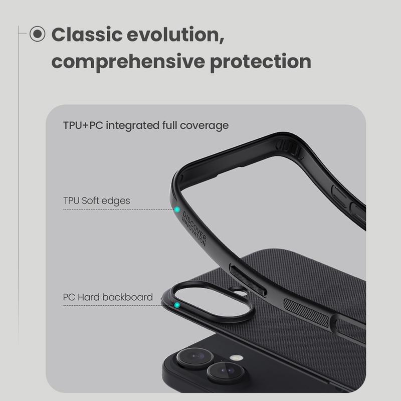 A Nillkin projetou a nova e mais poderosa versão Pro da capa Super Frosted Shield para o seu precioso iPhone 16. Proteção definitiva contra quedas, graças ao design de camada dupla - parte traseira do PC com moldura de TPU.