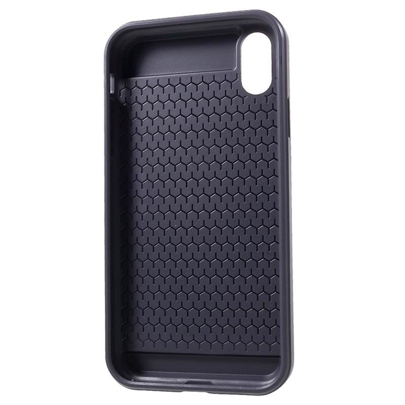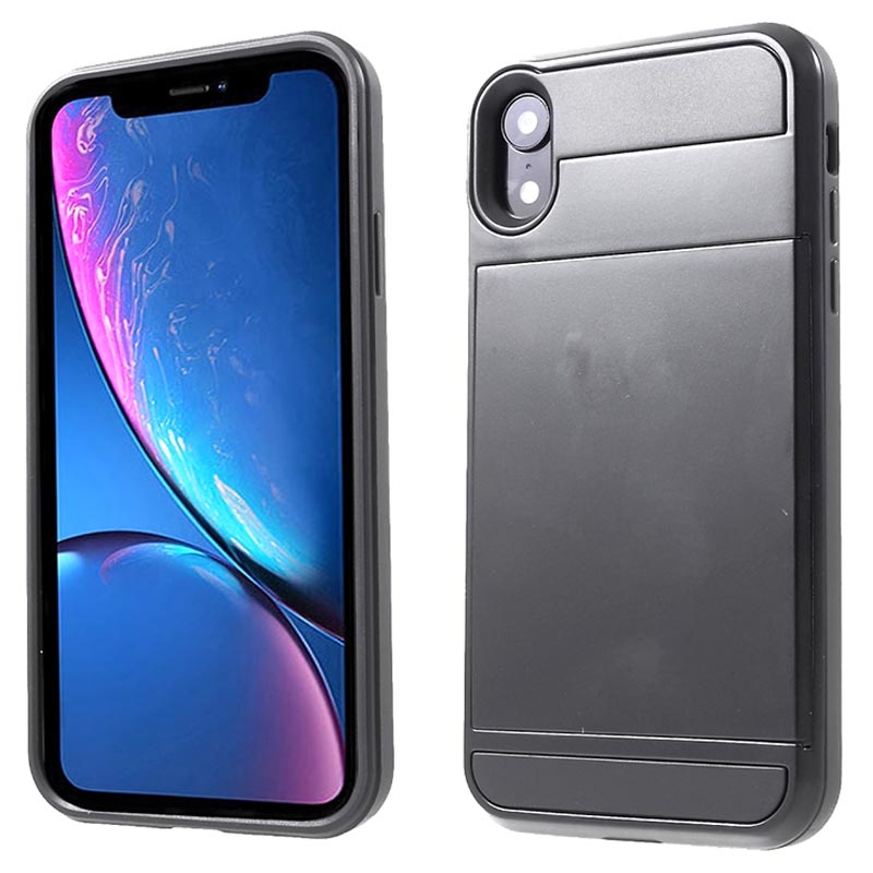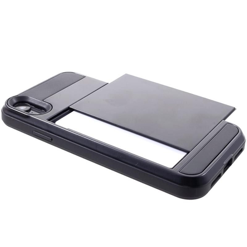 - Capa híbrida com porta-cartões deslizante traseiro para iPhone XR