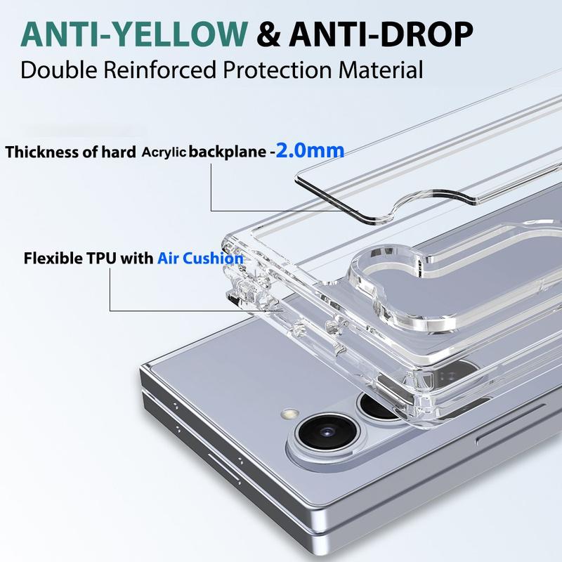 Este acessório combina acrílico e TPU para manter o seu smartphone em perfeitas condições. Os cantos reforçados e amortecedores evitam danos por queda. O design transparente mostra o design deslumbrante do seu Samsung Galaxy Z Fold6.