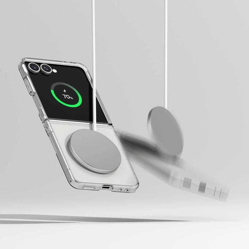 - A capa híbrida Ringke Fusion Magnetic pouco volume acrescenta ao Samsung Galaxy Z Flip7
