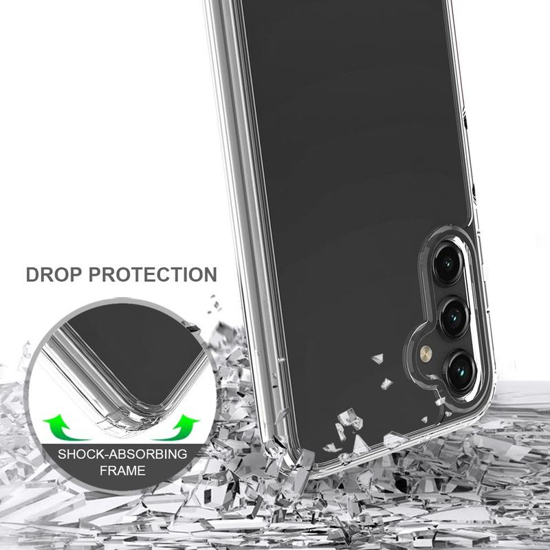 Não esconda a beleza do seu Samsung Galaxy A14! Esta capa transparente proporciona-lhe uma visão clara da cor e design do seu dispositivo, enquanto o protege contra riscos, solavancos e pó. Cantos reforçados protegem o seu Samsung Galaxy A14 de quedas com materiais de proteção duplos. Com o seu design leve e fino, esta capa é perfeita para os seus bolsos ou mala. A combinação de materiais desta capa outorga uma sensação táctil agradável e assegura a aderência. A parte traseira em acrílico proporciona proteção extra para o seu Samsung Galaxy A14, tornando-o seguro contra riscos, impressões digitais e pó.