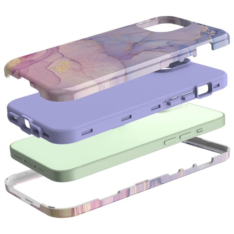 GW03 TPU macio + capa traseira rígida para PC para iPhone 14 Plus, capa para celular IMD com padrão elegante anti-riscos