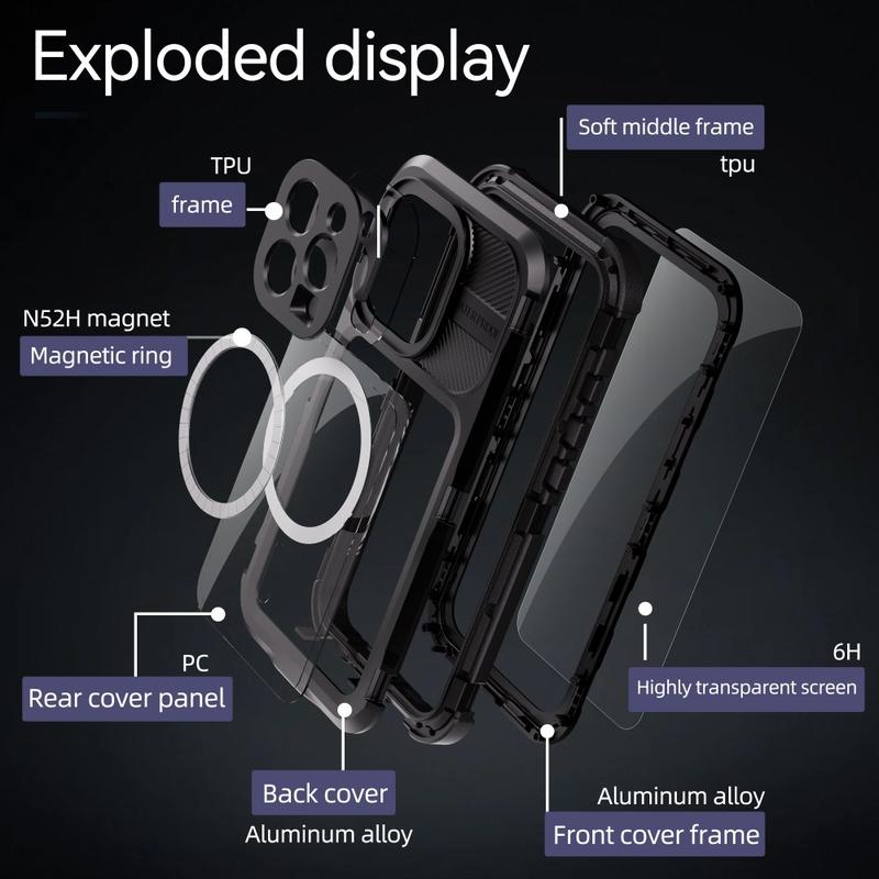 A capa impermeável Shellbox M Series combina proteção robusta com conveniência moderna. Sua classificação IP68 e compatibilidade MagSafe tornam-no um acessório versátil para aqueles que exigem durabilidade sem sacrificar a funcionalidade. Quer seja um mergulhador ávido ou alguém que procura uma proteção abrangente para o seu iPhone 16 Pro, esta capa oferece paz de espírito em qualquer ambiente.