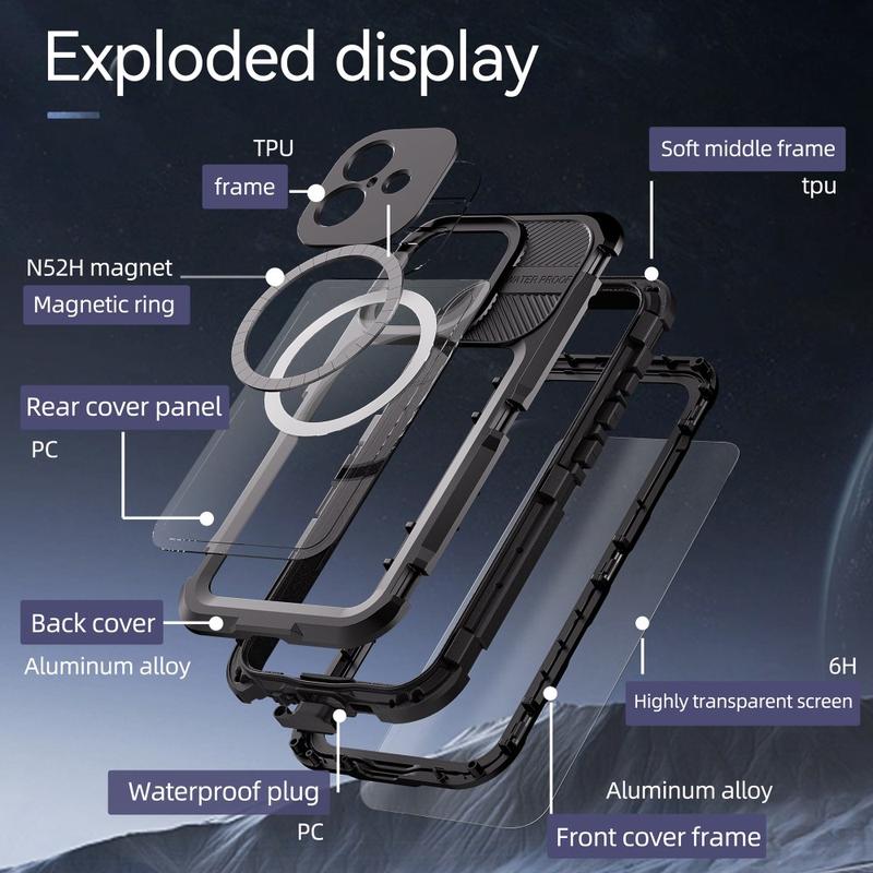 Proteja o seu iPhone 16 Plus durante aventuras subaquáticas com a capa impermeável IP68 da Shellbox M Series. Concebida para durar muito tempo, esta capa de mergulho em metal oferece proteção para todo o corpo até 15 metros debaixo de água, mantendo a compatibilidade MagSafe para um carregamento sem fios sem problemas. A sua construção robusta garante que o seu dispositivo permanece seguro em condições extremas, tornando-o ideal para mergulhadores, praticantes de snorkel e entusiastas de actividades ao ar livre.