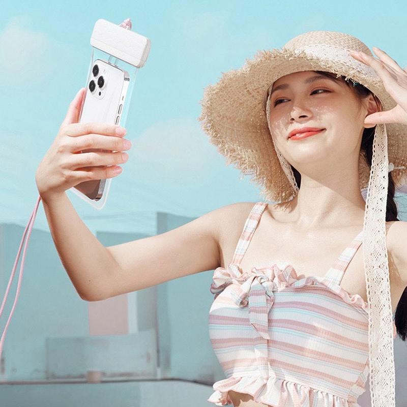 À prova de água IPX8, a bolsa para telemóvel à prova de água mantém o telemóvel totalmente protegido da água