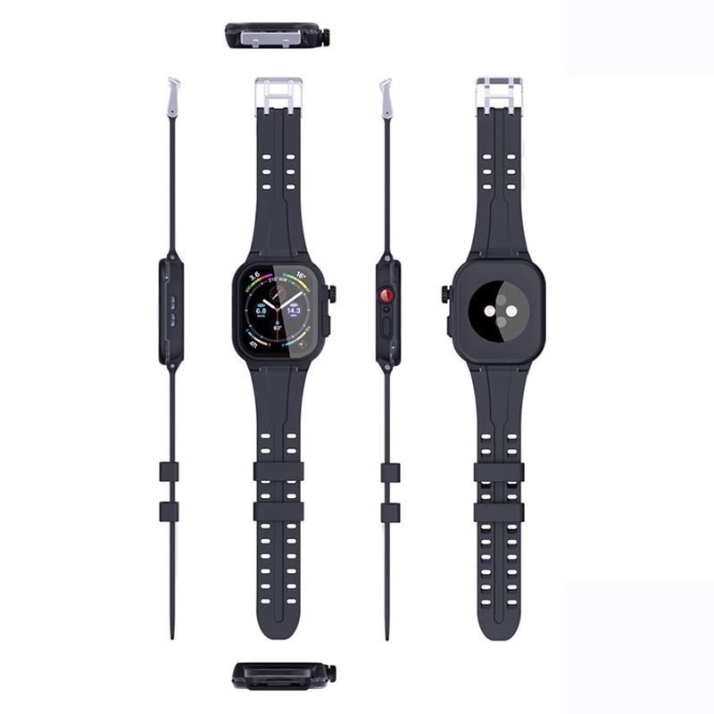Capa à Prova de Água Shellbox com Protetor de Ecrã e Bracelete de Silicone para Relógio Apple Watch Series 9, Apple Watch Series 8, Apple Series 7